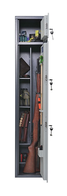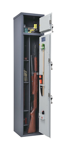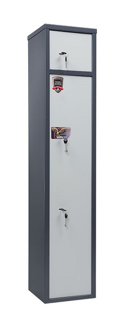 Сейф Беркут 150/2 (выставочный образец) предназначены для хранения огнестрельного оружия сейфы соответствуют требованиям ст.59 Постановления правительства РФ № 814 от 21 июля 1998 года О мерах по регулированию гражданского и служебного оружия и патронов к нему на территории РФ Изготовлен из металла толщиной 2 мм. Максимальная высота ствола 1220 мм. Вместимость сейфа 4 ствола. Сейф комплектуется блоком из 4 полок+1 полка в патронном отделении, ложементами. Размер патронного отделения (ВхШхГ), мм 230х296х254 Закрывается ключевым замком Цвет: графит структурированный. Тип покрытия порошковое.
