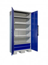 Инструментальные шкафы серии АМН ТС, или как их еще называют – инструментальные тяжелые шкафы, предназначены для хранения весьма увесистых вещей на производстве, например инструментов, какой-либо оснастки или прочих тяжелых грузов. Грузоподъемность таких шкафов – около 800 килограммов, это возможно за счет сварного корпуса, ведь толщина стенок и металла здесь составляет 1,5 миллиметра. Практически все инструментальные шкафы серии АМН ТС имеют трехстороннюю ригельную систему запирания, а диаметр ригеля составляет внушительные 15 миллиметров. Немецкие замки от производителя Kaba Mauer относятся к классу А и являются очень надежными как в плане защиты от несанкционированного доступа, так и в плане эксплуатации. Отличительной чертой тяжелых инструментальных шкафов серии АМН ТС является то, что они поставляются в собранном виде. В интернет-магазине компании «Мир сейфов» в наличии и под заказ присутствует огромный выбор инструментальных шкафов и производственной мебели с доставкой и установкой по всей России. Обращайтесь и наши операторы помогут Вам подобрать и оформить заказ любого инструментального шкафа под Ваши задачи.