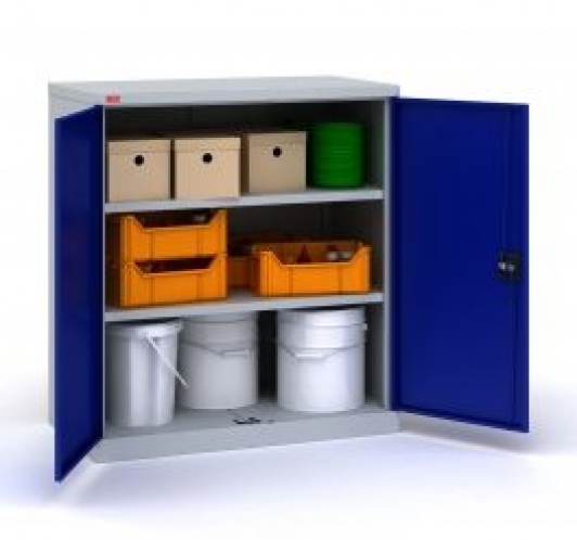 В комплектацию инструментального шкафа ИП-1-0,5 входит: корпус шкафа, двери, 2 съемные полки ИП-1 (ВхШхГ) 917х438 мм. Шаг перфорации для установки полок 83 мм. Нагрузка на полку - 60 кг. Шкаф оборудован ключевым замок повышенной секретности и ригельной системой запирания.