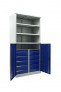 Шкаф ТС 1995/2-1020010 предназначен для хранения инструментов, слесарных приспособлений и других изделий на предприятиях, мастерских и автосервисах. Рабочие секции разделены на две части-открытую, для быстрого доступа к инструментам и комплектующим, и закрытую, запираемую на двери, для защиты содержимого. Шкаф сертифицирован на соответствия требованиям ГОСТ 16371. Изготовлен из металла толщиной 0,8 мм. Выдерживает максимальную нагрузку: на шкаф-500 кг, на полку-80 кг. В комплектацию входит: шкаф ТС-1995/2, две большие полки TCSh 95х47, десять выдвижных ящиков TCF 42х45, две полки TCSh 42х45, вертикальная перегородка ТС 1800/2, двери. В дверь установлен ключевой замок (Burg GSC813 в комплекте 2 ключа) с ригельной системой запирания. Шаг регулировки высоты полок 50 мм. Цвет: корпус- серый (Ral 7035), цвет двери и лицевая панель выдвижных ящиков -синий (Ral 5002). Поставляется в разобранном виде