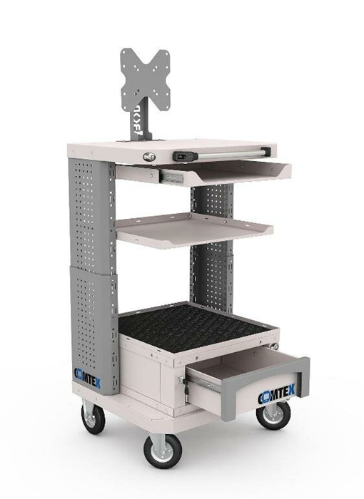 Дополнительно на тележку можно установить: выдвижную полку Comtex, выдвижной ящик Comtex, кронштейн для монитора, кронштейны для RACK модуля, цоколь для тумбы Comtex, лоток для тумбы/тележки Comtex, карман для документов А4 и другие аксессуары.
