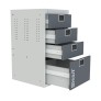 Выдерживает равномерно-распределенную нагрузку на верстак - 750 кг, на тумбу - 300 кг, на полку - 60 кг, на выдвижной ящик -30 кг, на перфорированный экран - 50 кг.
