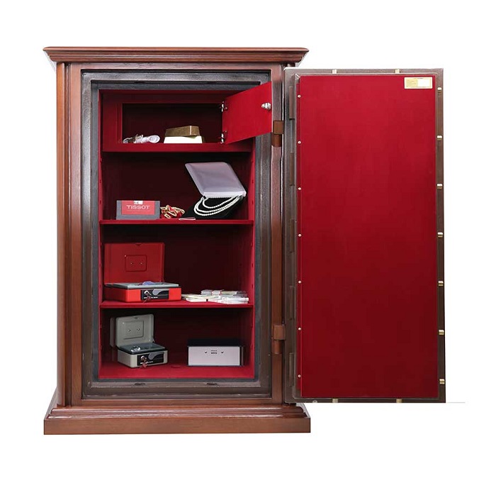 Valberg Гарант Евро 120 Т Д предназначен для сохранности документов и ценностей при пожаре и взломе. Рекомендованная сумма хранения денег до 6,5 млн. руб. для физических лиц и до 2 млн. руб. для юридических лиц. Устойчивость к взлому по ГОСТ Р 50862-2017: класс 2 (ГОСТ Р). Огнестойкость: ГОСТ Р 57384-2017: класс 60Б (ГОСТ Р). При заливке двери и корпуса сейфа используется запатентованная система армирования огнестойкого бетона. Толщина защитного слоя двери - 33 мм, общая толщина двери - 105 мм. Толщина боковых стен -77 мм, задней стенки - 51 мм. В сейф установлена: 3х сторонняя ригельная система запирания; защита замка и ригелей от высверливания и выбивания; система блокировки ригельного механизма при выбивании замка; тепловой замок, усиленный огнестойким уплотнителем. Сейф Valberg Гарант Евро 120 Т Д (дуб) закрывается ключевым замком KABA MAUER (под заказ возможно установить - электронный кодовый замок PS610/E036; биометрический кодовый замка PS610FD/E36FD). Предусмотрена возможность анкерного крепления к полу (анкерный болт в комплекте). Внешняя отделка выполнена из натурального дерева, внутренняя отделка из бархата. Покрытие ручек: матовый хром или золото. Цвет: корпус - №11-А, внутренняя отделка - С-1059. Возможны другие варианты окрашивания.